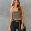 Trendy babes will love the Lucky One Cotton Twisted Front Top in green that features a twisted front.