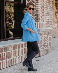 //VICI Exclusive// Your Fall closet NEEDS the Whinn Pocketed Blazer in blue thatβs detailed with front button closures.
