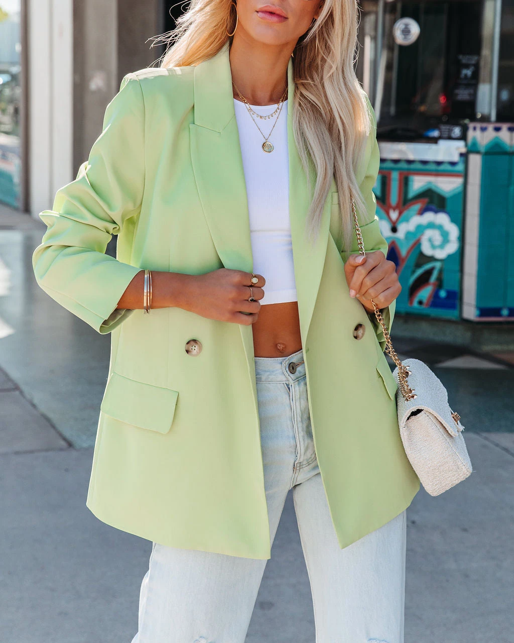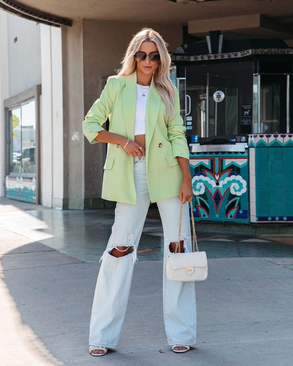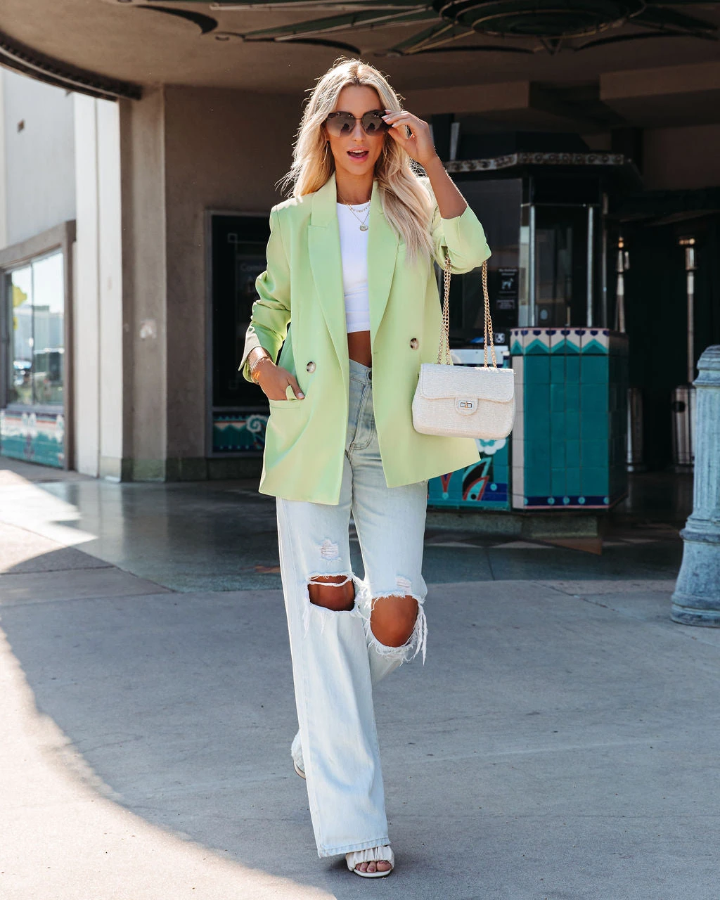 //VICI Exclusive// Your Spring closet NEEDS the Whinn Pocketed Blazer in lime that’s detailed with front button closures.