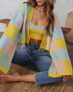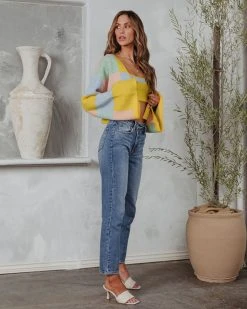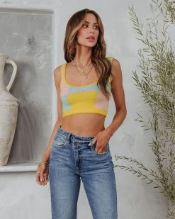 Cozy meets cute in the Wynwood Walls Knit Checkered Crop Top in yellow multi that features a shorter fit.