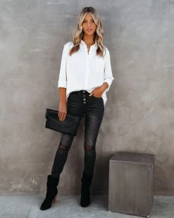 Say hello to your new favorite satin blouse! The Impulse Satin Button Down Blouse comes in a luxuriously smooth white satin with a collar and a bust pocket.