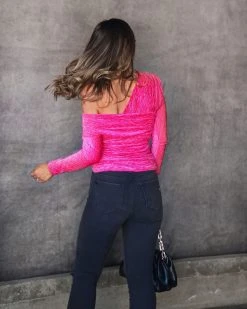 Turn heads in the Malibu Queen Textured Velvet Off The Shoulder Top in hot pink that features an off the shoulder neckline.