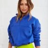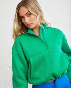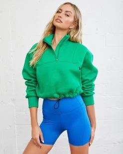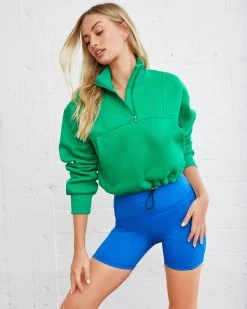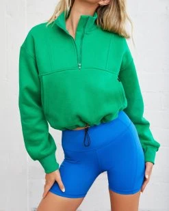 //VICI Exclusive// Our Athletic Cotton Blend Pocketed Half Zip Pullover is right on trend! This green pullover features a kangaroo pocket. Designed with ribbed edges and a drawstring waistband. Styled with the Superset Biker Shorts.