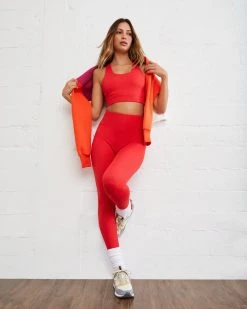 //VICI Exclusive// Your new fav classic workout set! Our Flex Sports Bra in red is super breathable. Designed with a removable cupping and an under-bust elastic. Moisture wicking with a 4 way stretch! Styled with the Flex Legging and Metropolitan Faux Suede Sneaker.