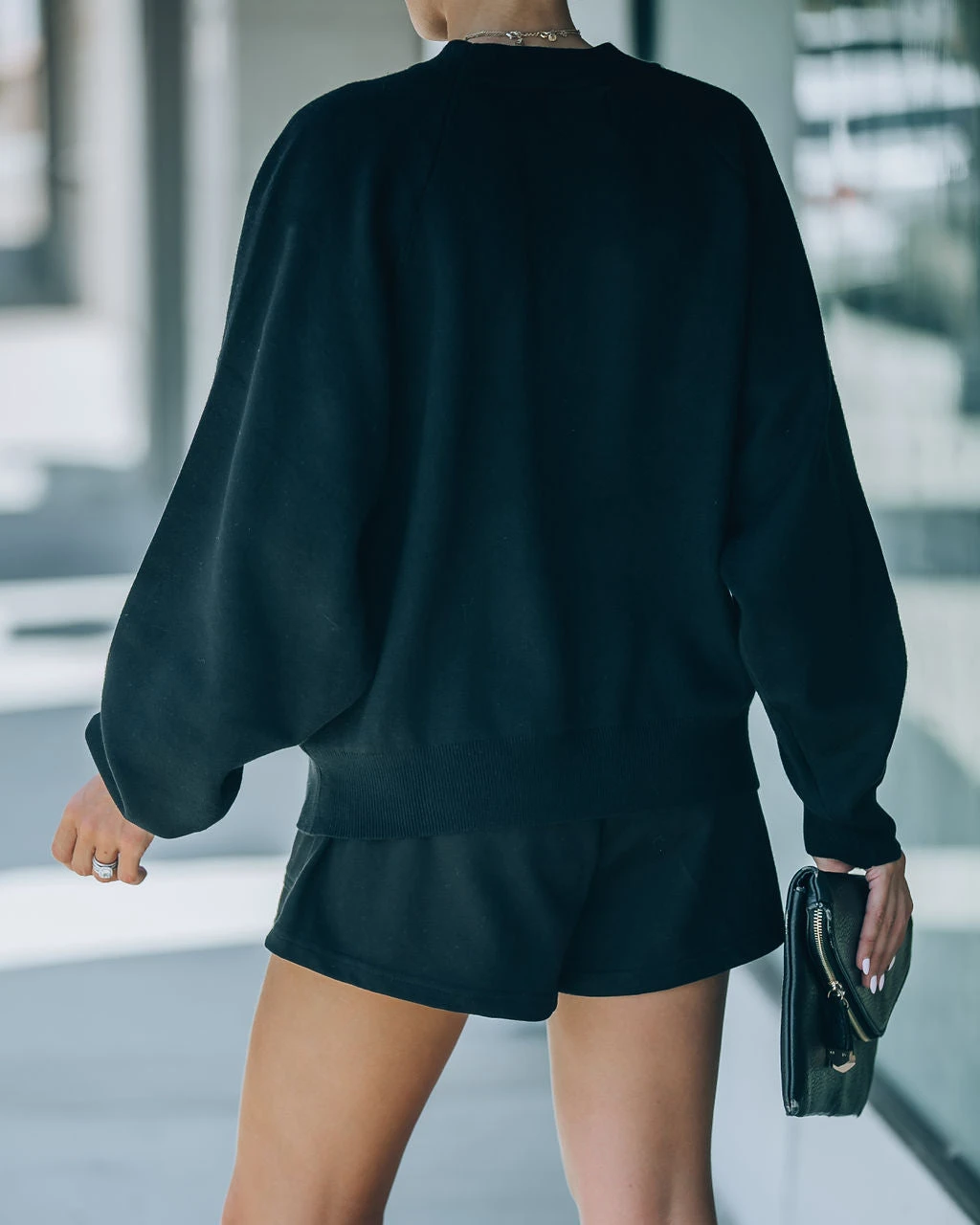 The set of the season is the Naomi Cotton Blend Sweatshirt in black that features a crew neckline.