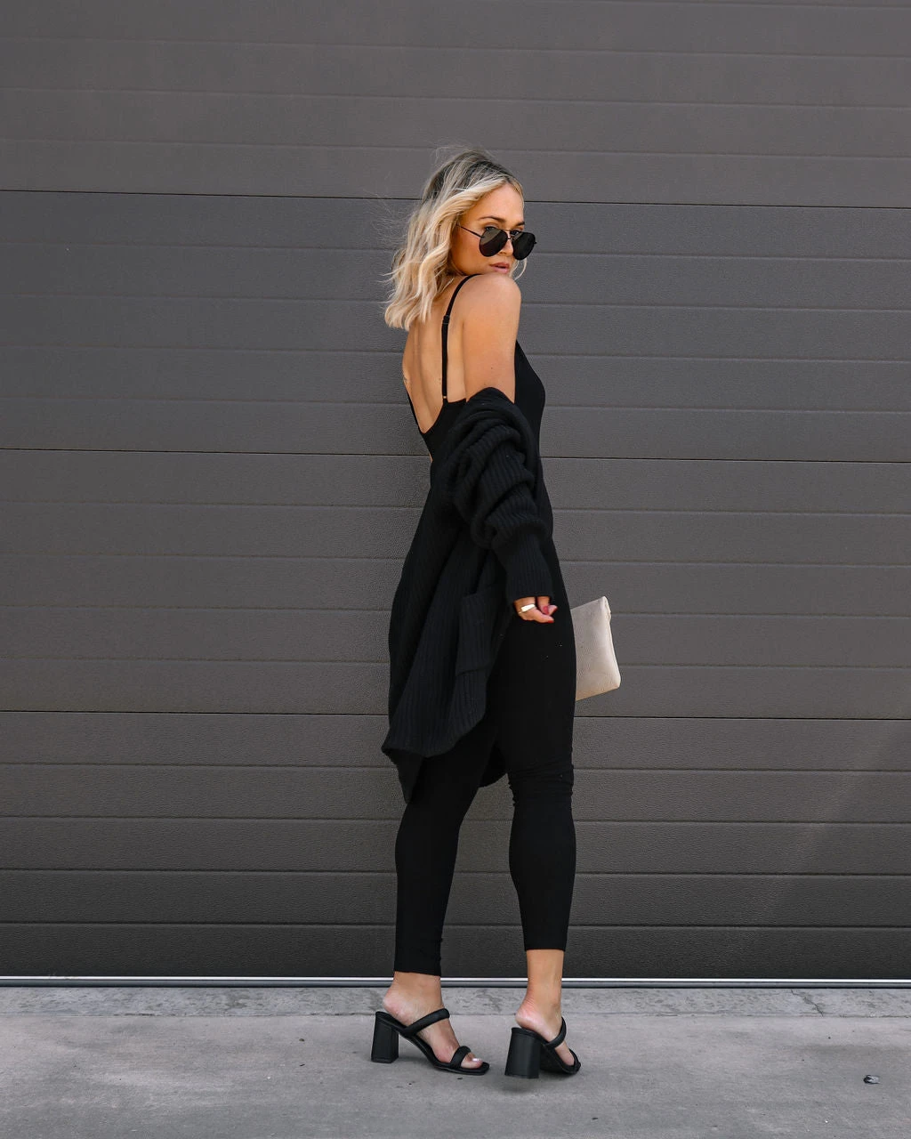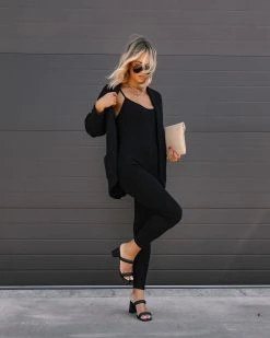 Upgrade your errand-running outfit in the Take It Easy Cotton Jumpsuit in black that features a scooped neckline.