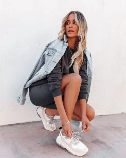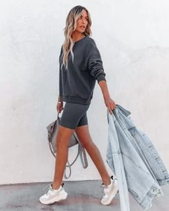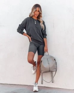 Give your athleisure collection an upgrade in this graphite grey set! Our Taylin Cotton Blend Sweatshirt features a crew neckline. Designed with long sleeves and ribbed edges. Styled with the Perfect Hoop Earrings, Chloe Mini Necklace, Initial Card Necklace, Compass Coin Necklace, Simple Bangle Bracelet, Kenzie Backpack, Josie Pocketed Vintage Denim Jacket, Taylin Ribbed Biker Shorts, and Perla Running Sole Sneaker.