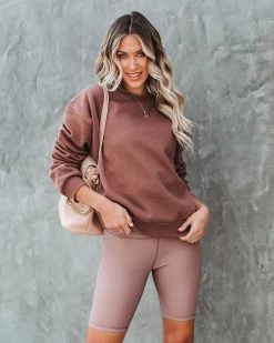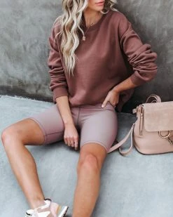 Give your athleisure collection an upgrade in this latte colored set! Our Taylin Cotton Blend Sweatshirt features a crew neckline. Designed with long sleeves and ribbed edges. Styled with the Perfect Hoop Earrings, Chloe Mini Necklace, Initial Card Necklace, Simple Bangle Bracelet, Val Chain Convertible Backpack, Taylin Ribbed Biker Shorts, and Boulevard Faux Suede Sneaker.