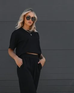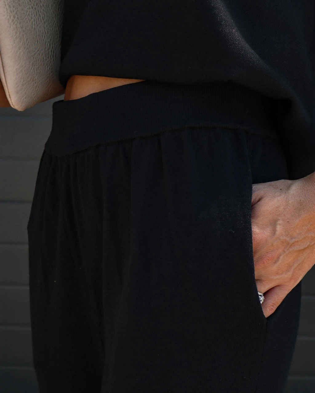 Lounge all day in the Tristan Knit Short Sleeve Top in black that features a crew neckline.