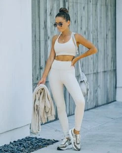 The ultimate sporty girl outfit! Our Warm Up Sports Bra comes in a gorgeous sand hue. Designed with a removable bra cupping. Finished with trendy criss cross back straps. Styled with the Chloe Mini Necklace, Wellness Layered Pendant Necklace, Highland Bag, Warm Up Cotton Pocketed Cutout Hoodie, Warm Up Legging, and Piper Cheetah Running Sole Sneaker.