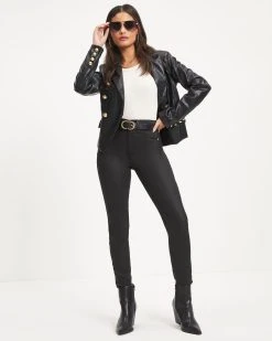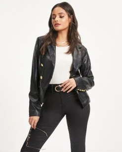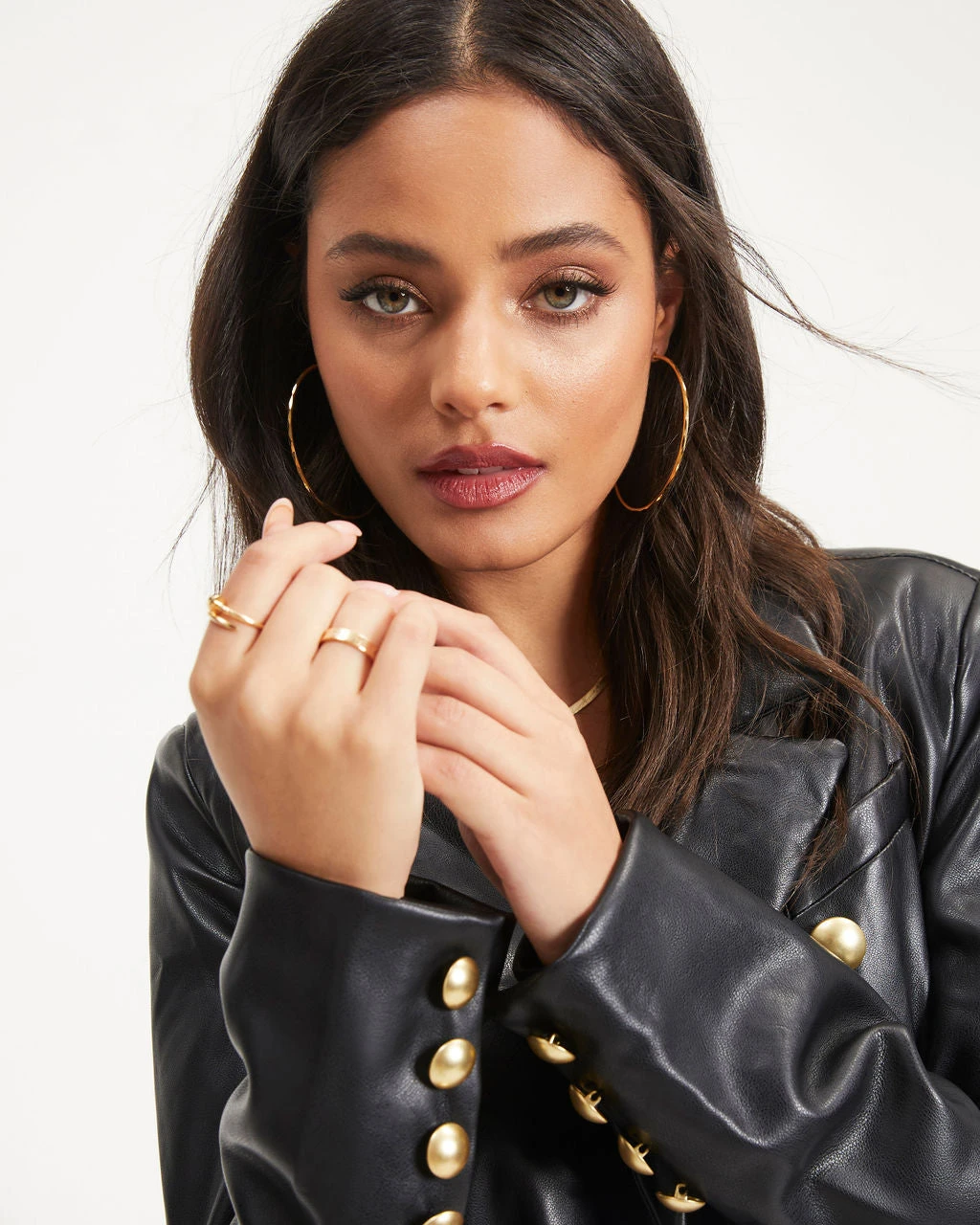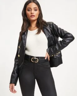 Head into the city in the Impress Me Much Pocketed Faux Leather Blazer in black that features padded shoulders.