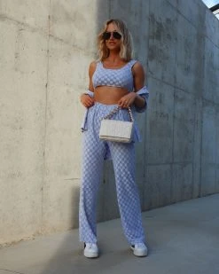 Trendy babes will love the Unstoppable Me Checkered Cotton Blend Button Down Top in light blue that features a relaxed fit.