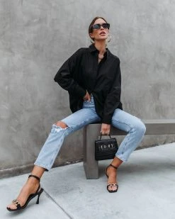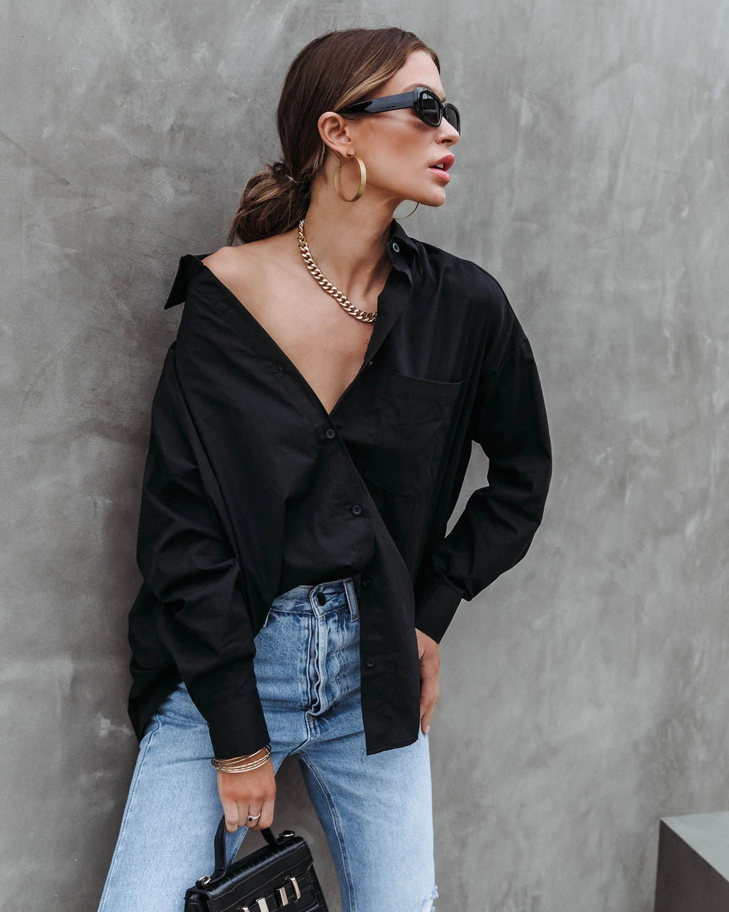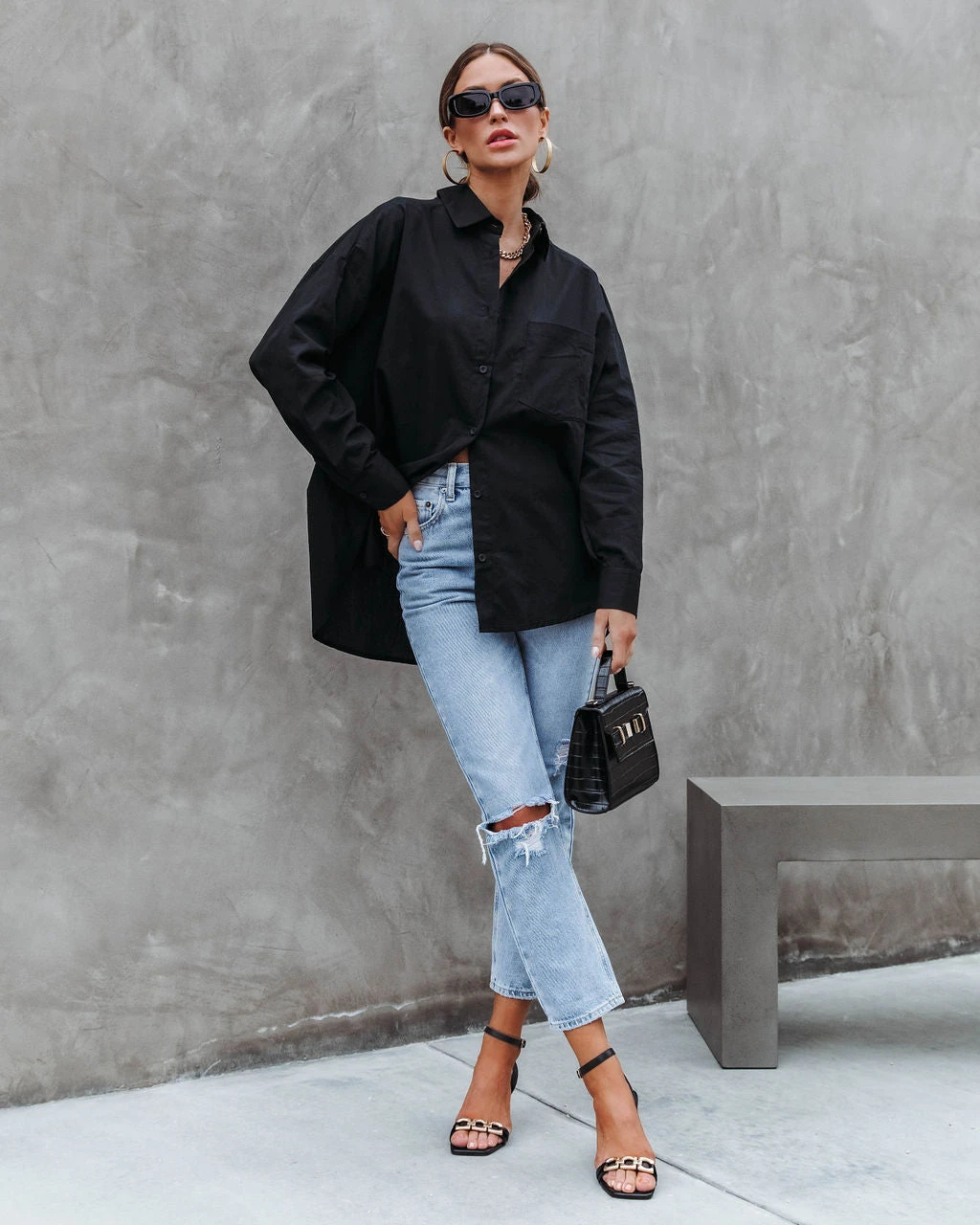Cool girls will love the East Coast Cool Relaxed Cotton Button Down Top in white that features an oversized fit.