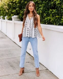 Celebrate Summer in the Halona Tiered Babydoll Top in white that features a split neckline.
