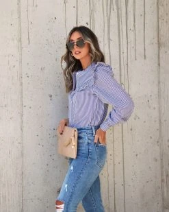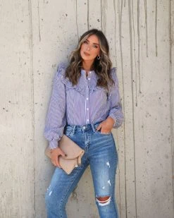 Be the best dressed coworker in the 9 to 5 Cotton Ruffle Button Up Top in black and white that features front button closures.
