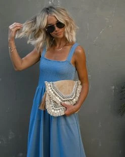 Sip rose in the garden in the Mattea Smocked Pocketed Jumpsuit in blue that features side pockets.