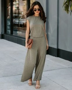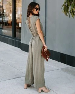 Every wardrobe needs the Not What It Seems Pocketed Jumpsuit in Olive with the wide pant leg and open neckline.