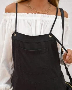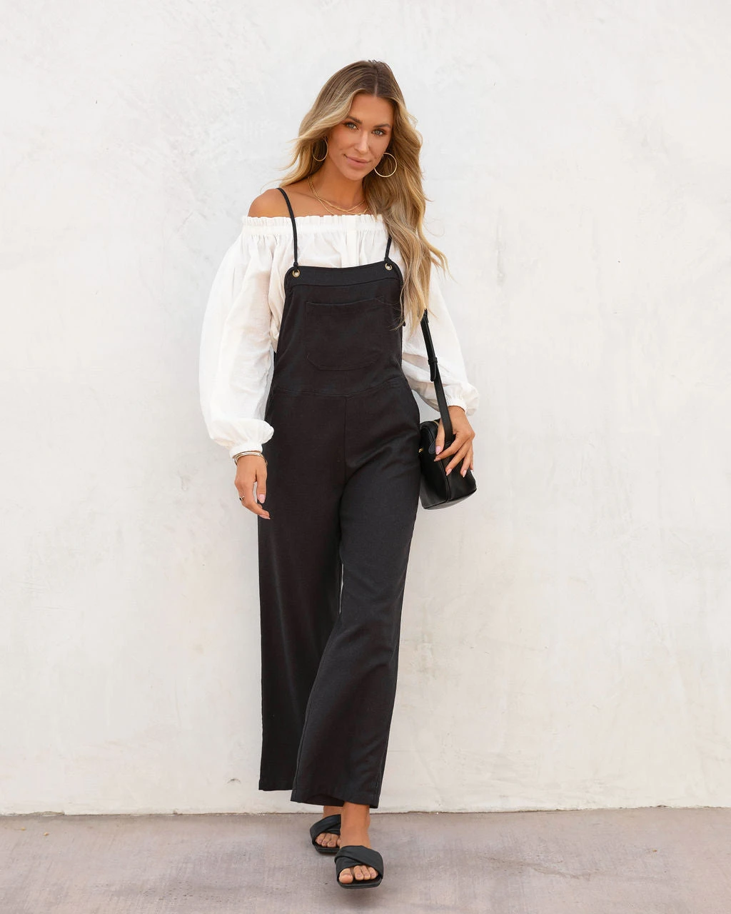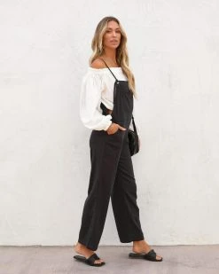 Comfort meets cuteness in the Boardwalk Adventures Pocketed Jumpsuit in black that features a straight leg.