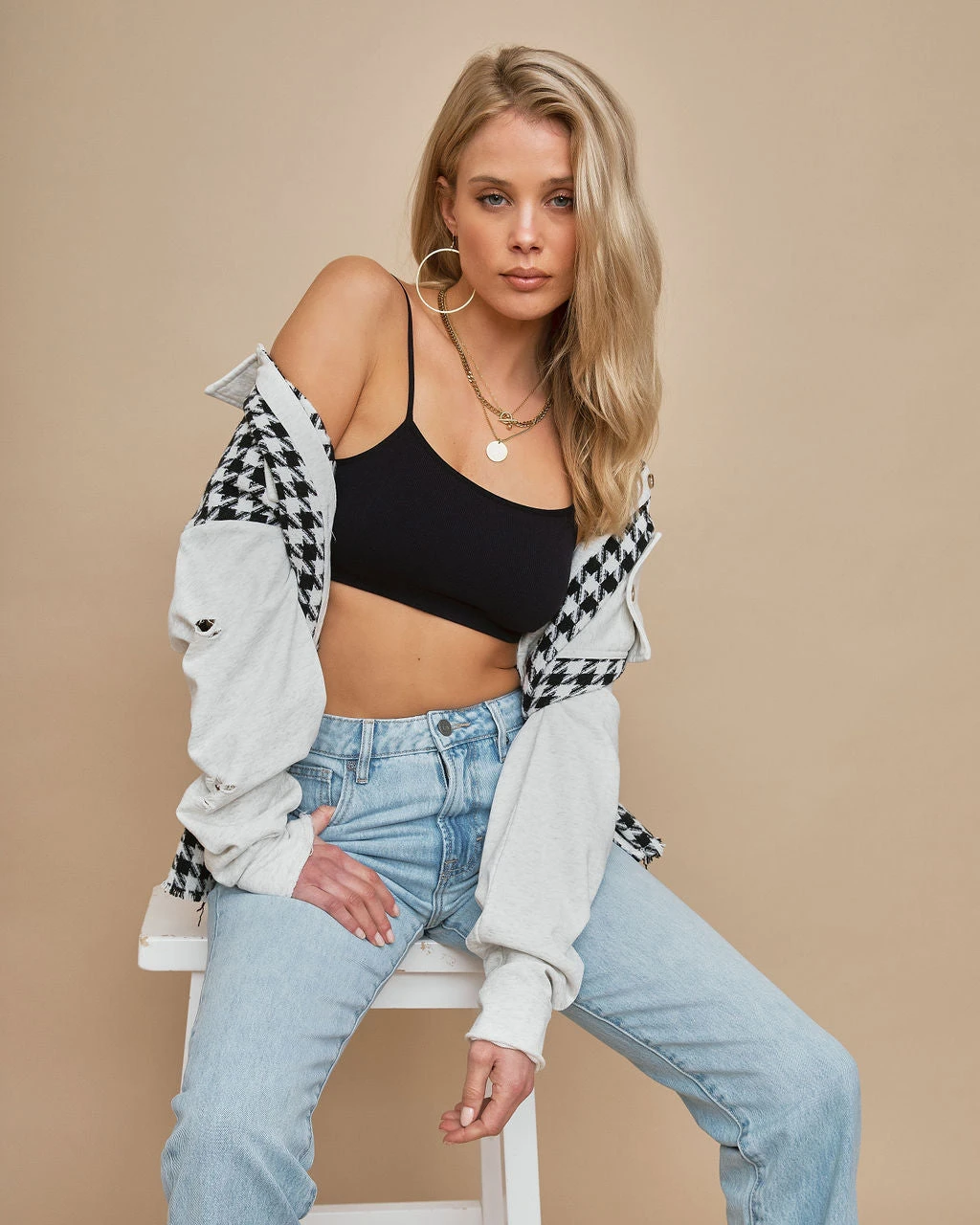 Trendy babes will love the Manhattan Ribbed Brami in black that features thin straps.