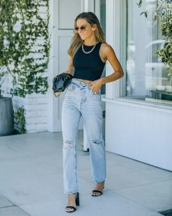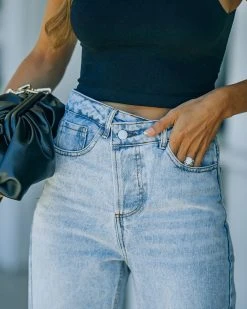 We can’t enough of the criss cross trend! Our Culture High Rise Distressed Criss Cross Denim come in a light wash with a front asymmetrical button fly closure. Finished with a straight leg and a classic 5 pocket. Styled with the Banks Chain Necklace, Chic Crossbody Chain Pouch Bag, Kiki Knit Crop Top, and Whimsy Heel.