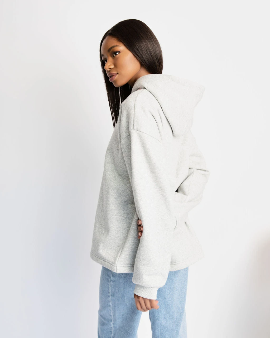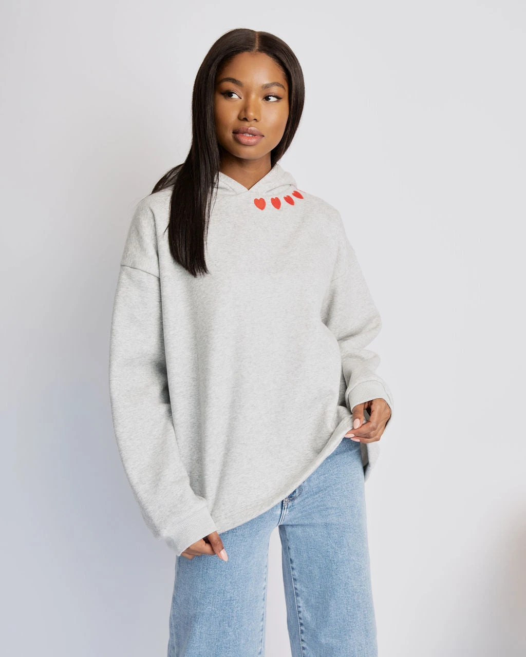 Comfy meets festive in the Collecting Hearts Fleece Hooded Sweatshirt in grey that features a relaxed fit.