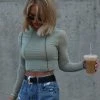 Model is Wearing a Size Small. Height is 5’7″, Bust is 32”, Waist 25”, and Hips 30”