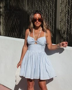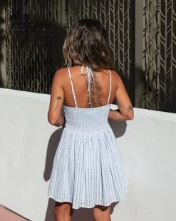 Get your dose of summer in the Brooklynn Smocked Pocketed Romper in Light Blue that features fun side pockets.