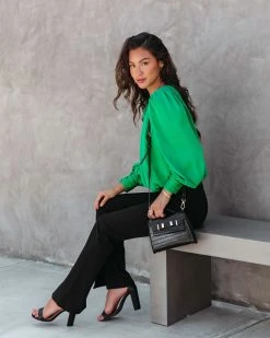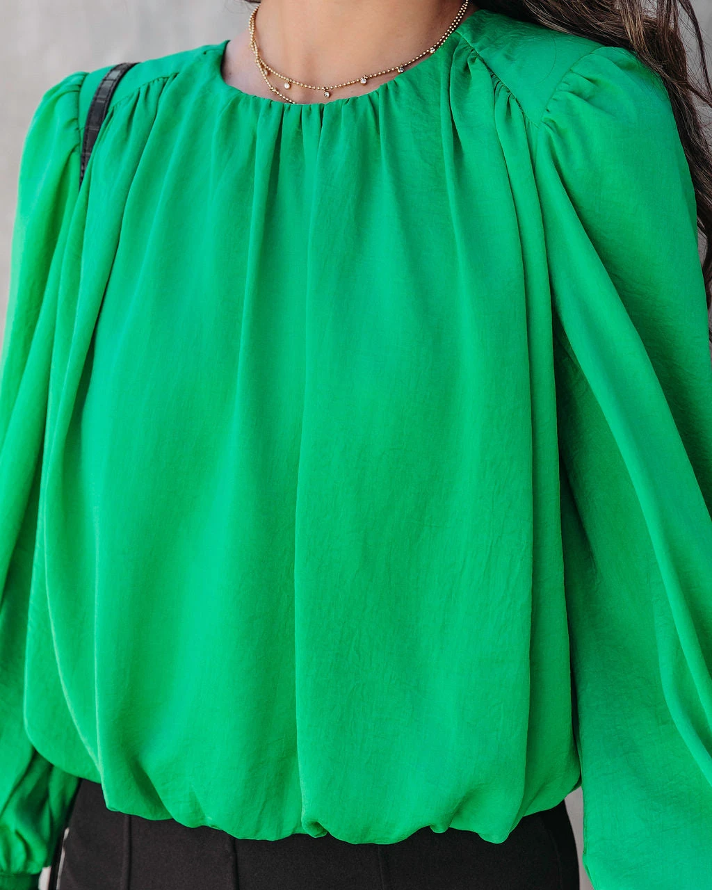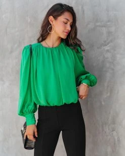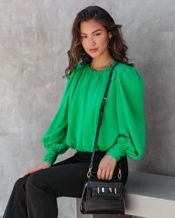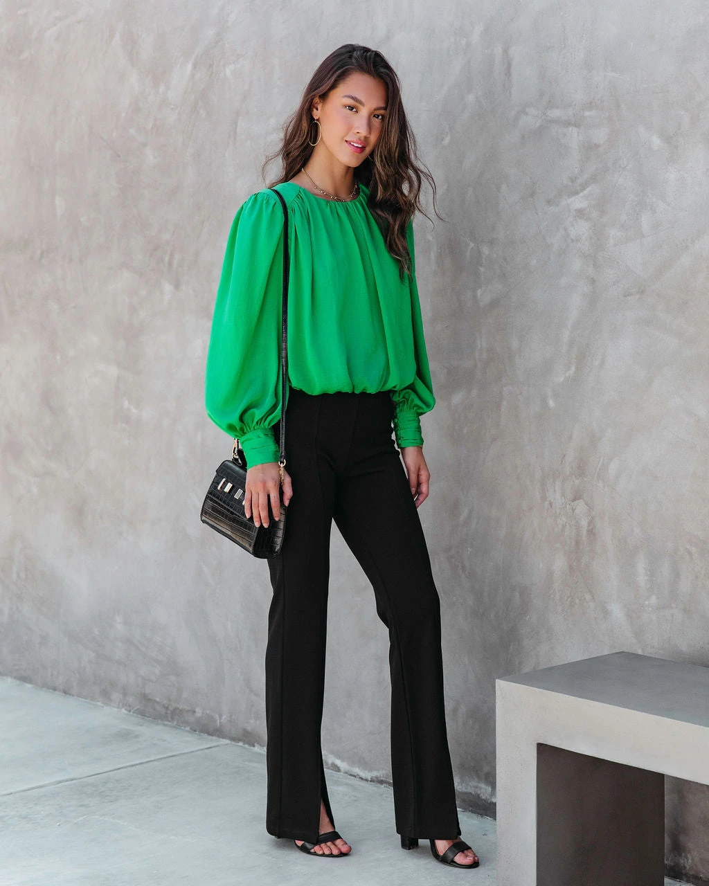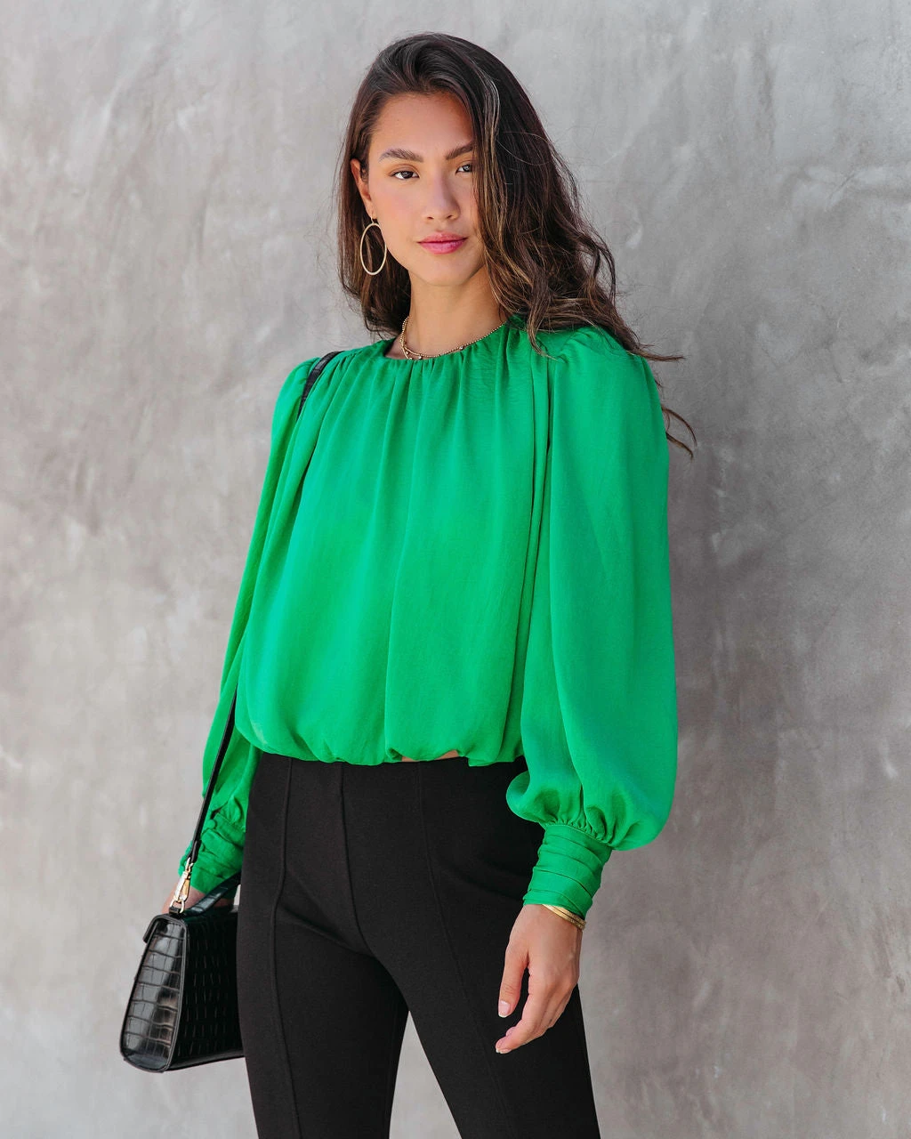 Be the best dressed coworker in the Celene Padded Shoulder Blouse in emerald that features a shoulder padding.