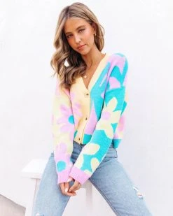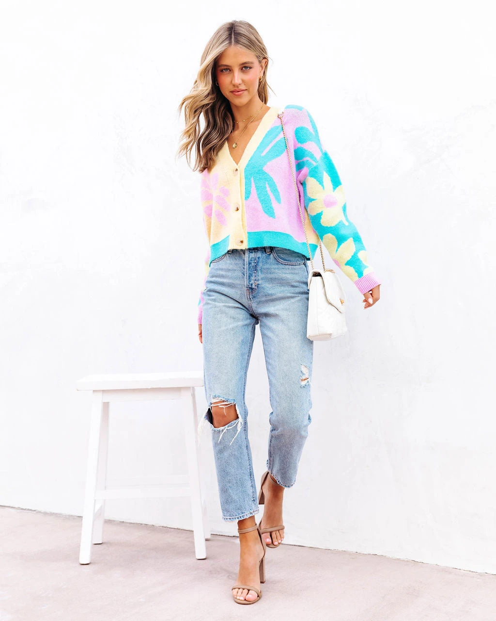 Cozy meets trendy in the Cuddle Club Cardigan in yellow multi that features front button closures.