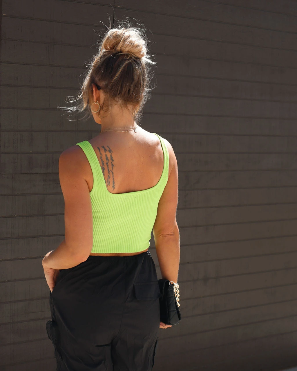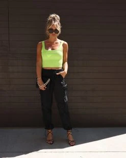 - Size S/M: Length measures 16” from shoulder to hem with a 32” bust with stretch