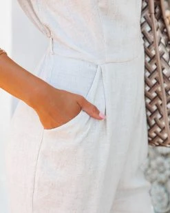 Celebrate sunny days in the Campanella Pocketed Jumpsuit in oatmeal that features side pockets.