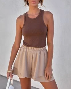Get back to the basics with our Maliah Ribbed Tank. This chocolate hued ribbed knit tank has a high neckline with a fitted silhouette.