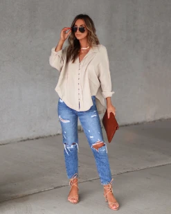 - Size M: Length measures 26” from shoulder to hem with a 42” bust