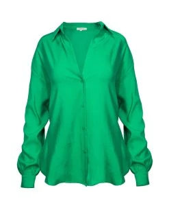 //VICI Exclusive// Bright button downs are so trendy this year! Our Dulce Accent Sleeve Button Down Blouse comes in green. Designed with a collar and button front closures. Styled with the Giselle Patent Leather Mini Skirt.ย