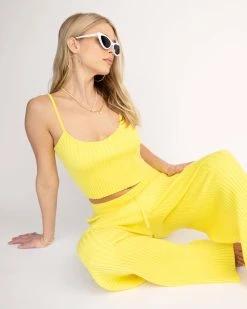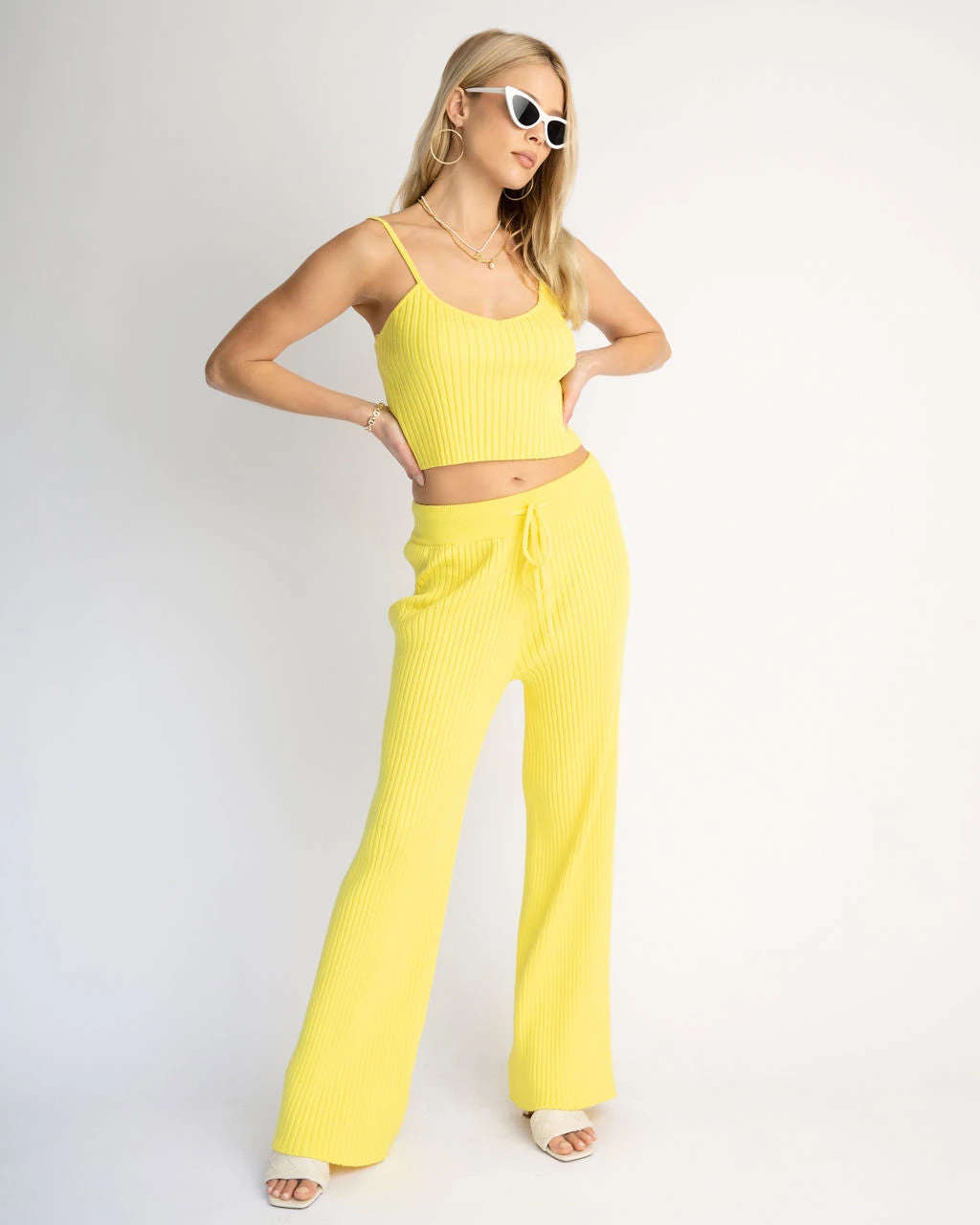 Stand out in the Laid Back Luxe Ribbed Tank in yellow that features a relaxed fit.