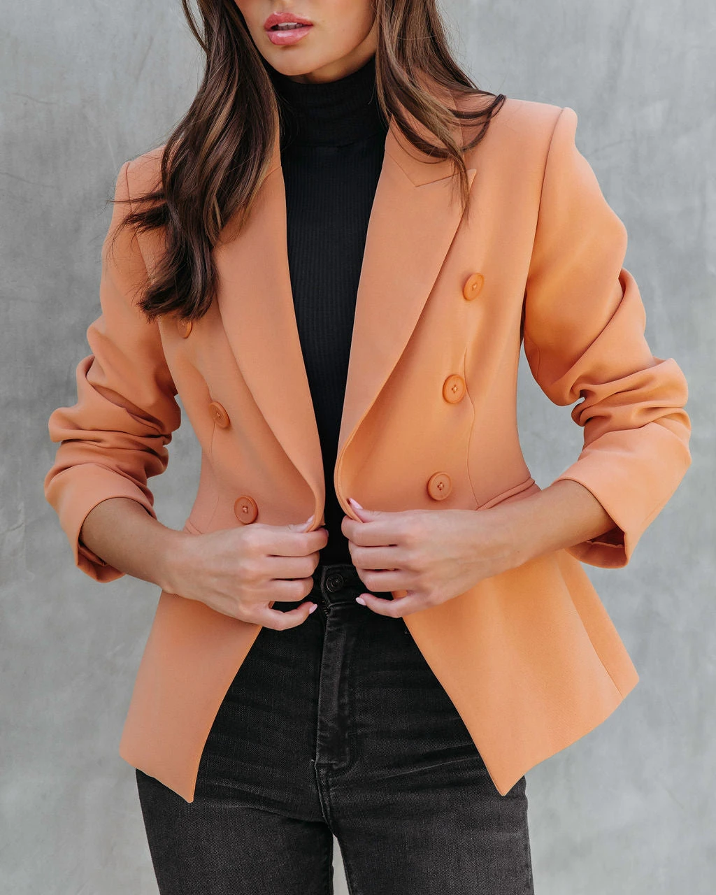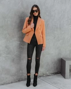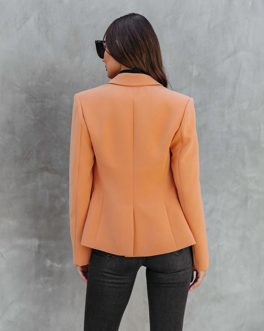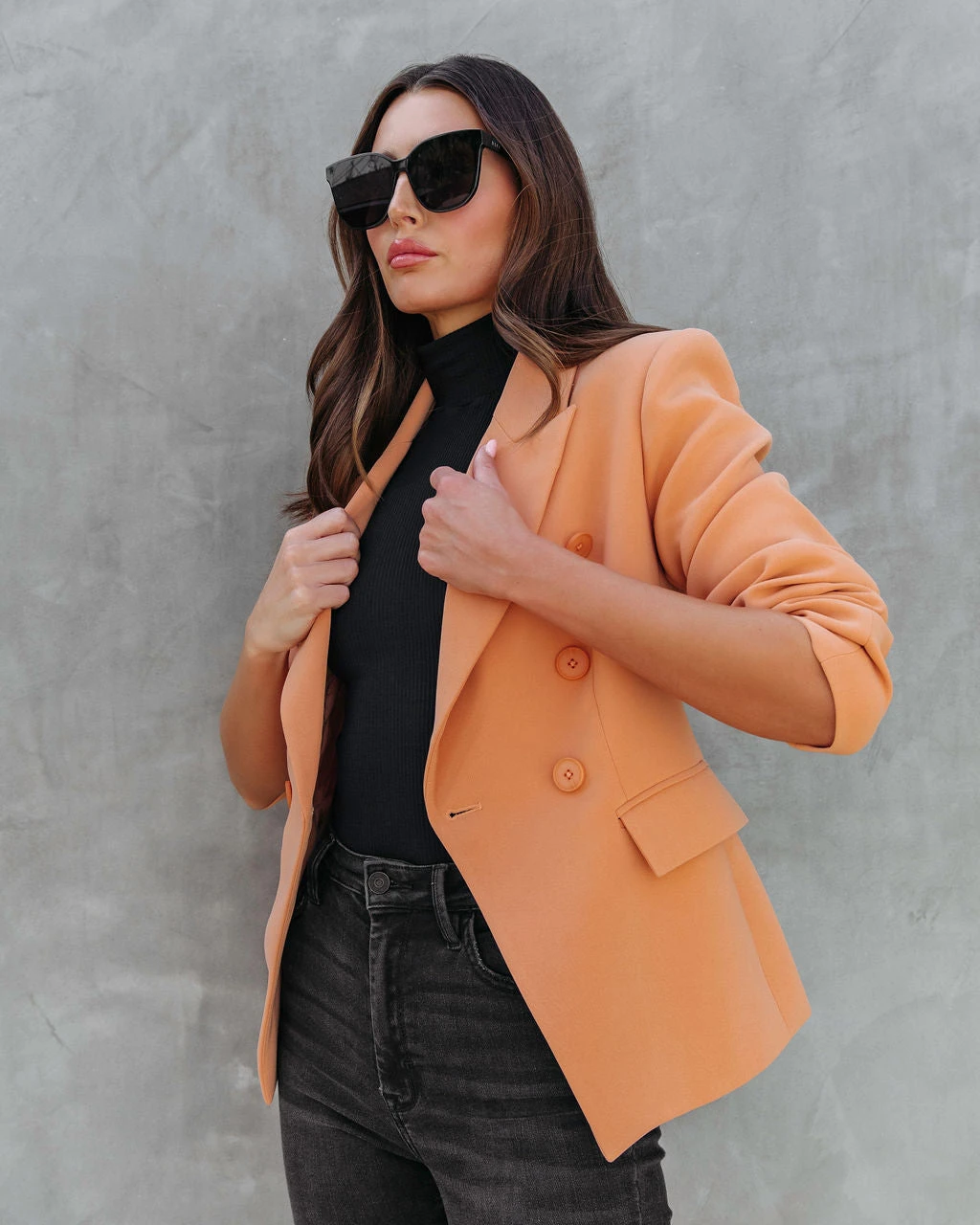 An essential for Fall, the Must Be Baby Pocketed Blazer in dusty orange features a lower back vent.