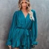 Go for glam in the Shine Bright Sequin Romper in navy that features a draped neckline.