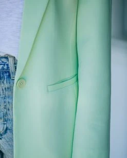 //VICI Exclusive//Best Seller// New Color// Be a boss babe in our Standards Pocketed Blazer! This bright pistachio blazer has a notched collar and long sleeves. A lower back vent allows for comfortability. Finished with front slip pockets and a front button closure. Styled with the Moxie Simple Chain Necklace, Compass Coin Necklace, Simple Bangle Bracelet, Chic Crossbody Chain Pouch Bag, Physique Racerback Tank, Kason Distressed High Rise Denim, Standards Pocketed Tailored Shorts, and Whimsy Heel.