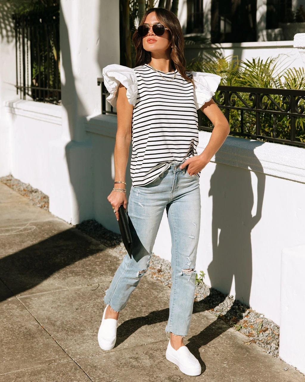 Model is Wearing a Size Small. Height is 5’7”, Bust is 33”, Waist 25.5”, and Hips 34”