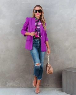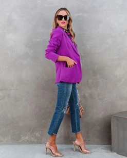 Turn heads in the Dolly Pocketed Puff Shoulder Blazer in magenta that features padded shoulders.