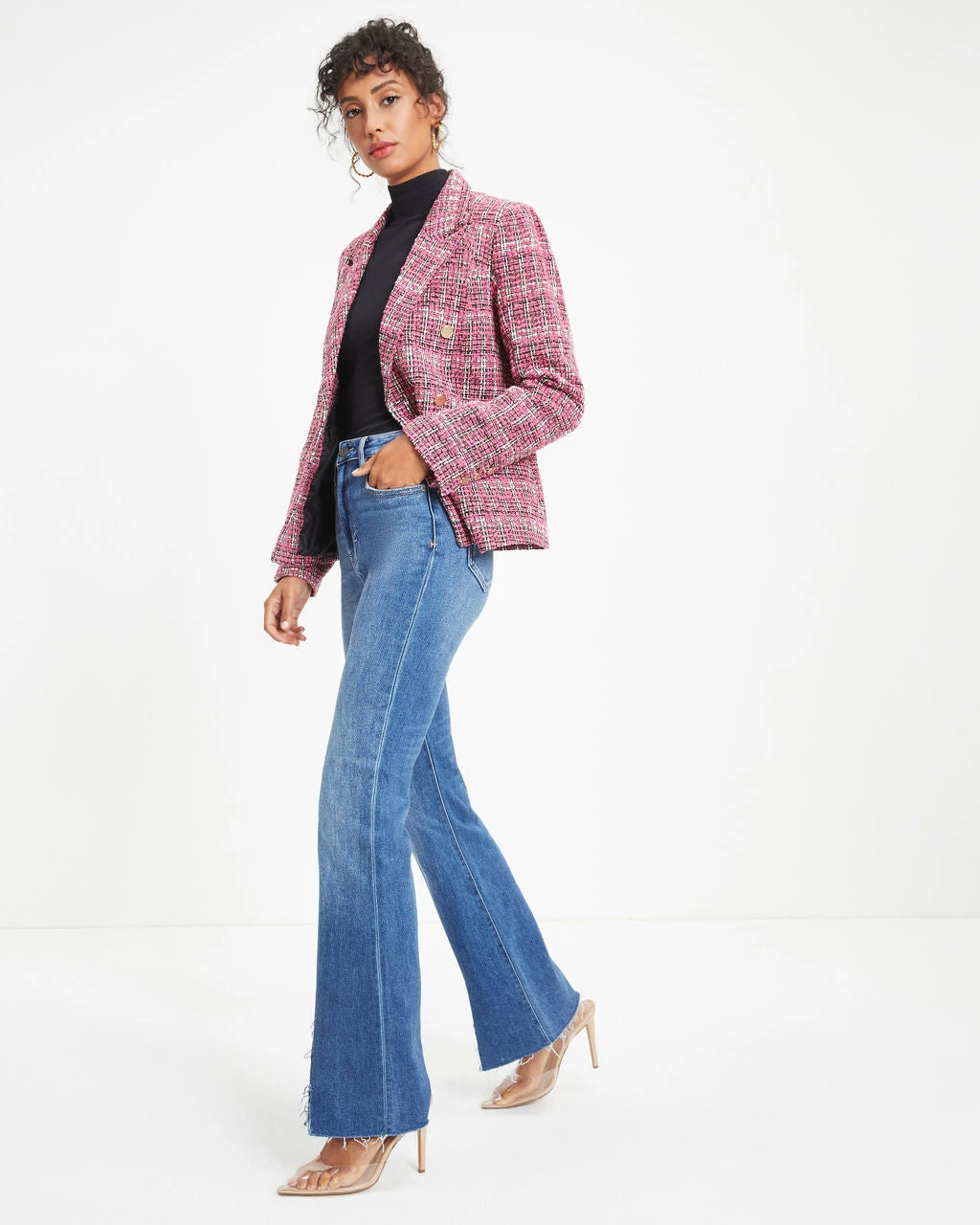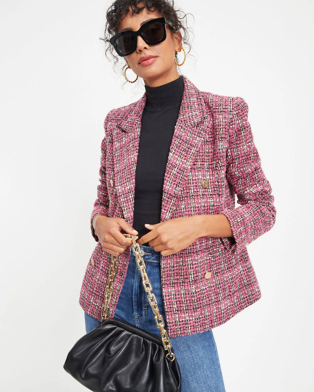 Posh meets pretty in the Elle Woods Tweed Blazer in hot pink that features a notched collar.