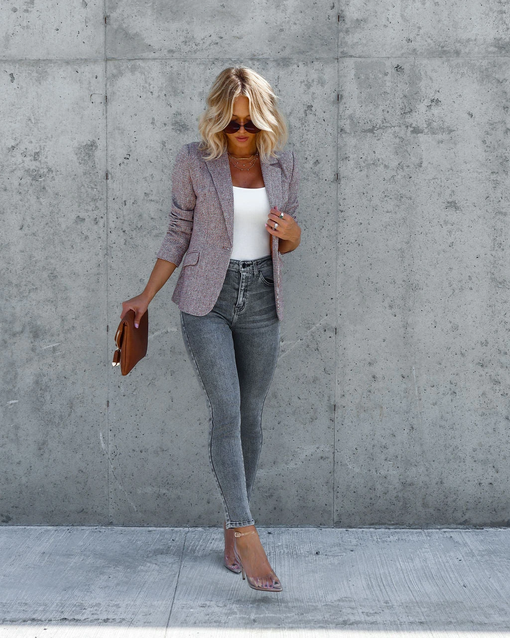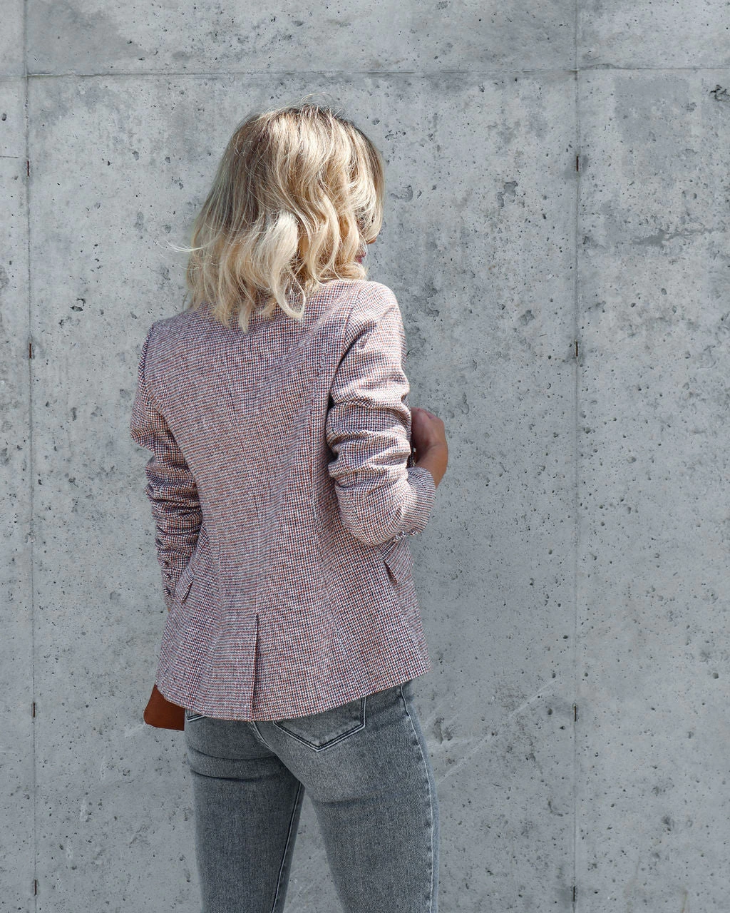 Boss babes will love the Henry Houndstooth Pocketed Blazer in brown multi that features flap pockets.