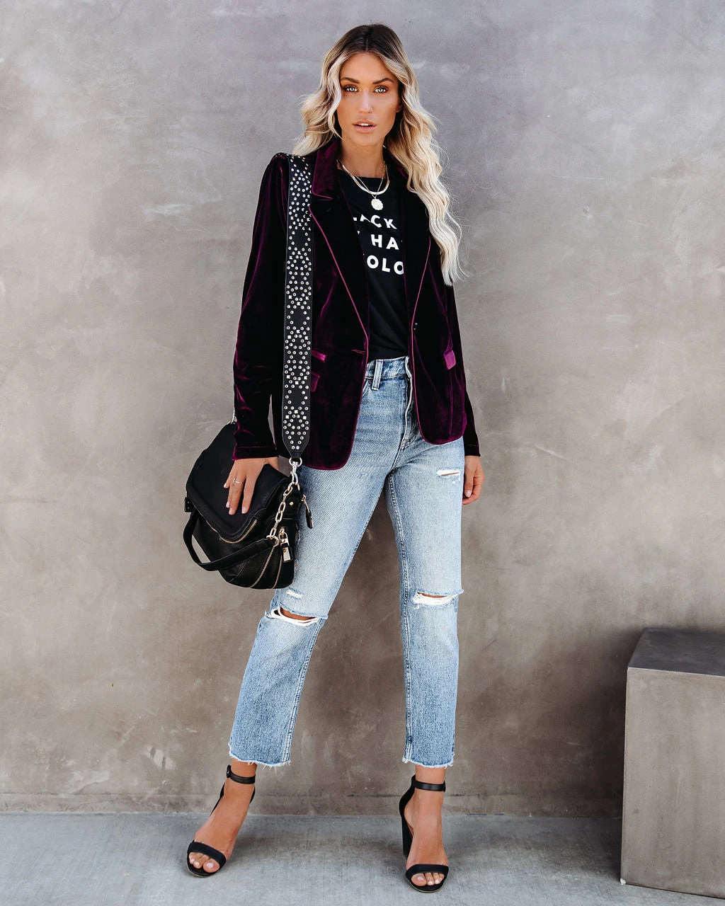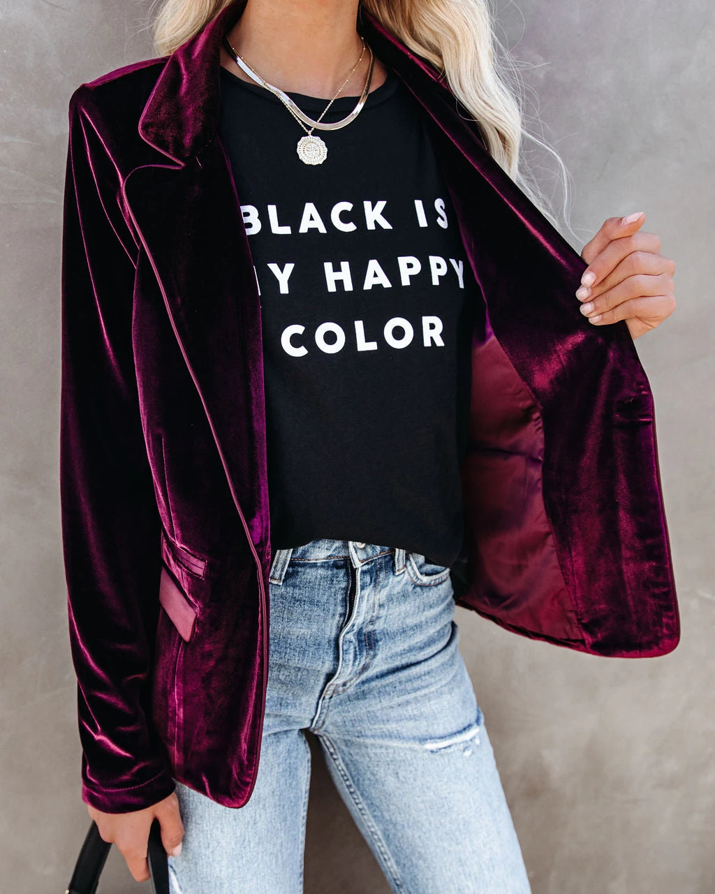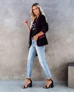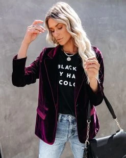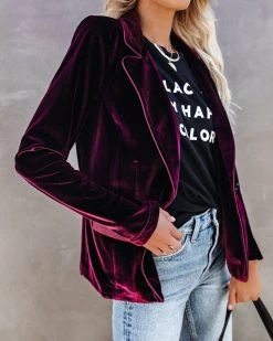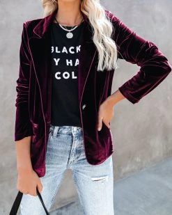 //Best Seller// Our Wine Me And Dine Me Pocketed Velvet Blazer returns for another season of holiday parties and elevated looks! This lush wine velvet blazer features all of the essentials including a notched lapel, long sleeves, two functional pockets and lined body. A true to size fit that is well tailored and chic. Finished with a front button closure.