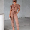 //Best Seller// New Color// The Andy Cotton Blend Pocketed Jumpsuit in denim blue features spaghetti straps that support the front v-neckline.