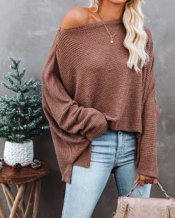 We adore the Lovell Boat Neck Thermal Knit Top for its flattering wide neckline and long dolman sleeves. Crafted in a mocha thermal with side slits and an effortless style. Pair with your fave denim and go! Styled with the Hunter Chenille Pom Beanie, Locked In My Heart Toggle Necklace, McGuire High Rise Distressed Denim, Highland Bag, and Celina Faux Suede Peep Toe Bootie.