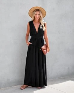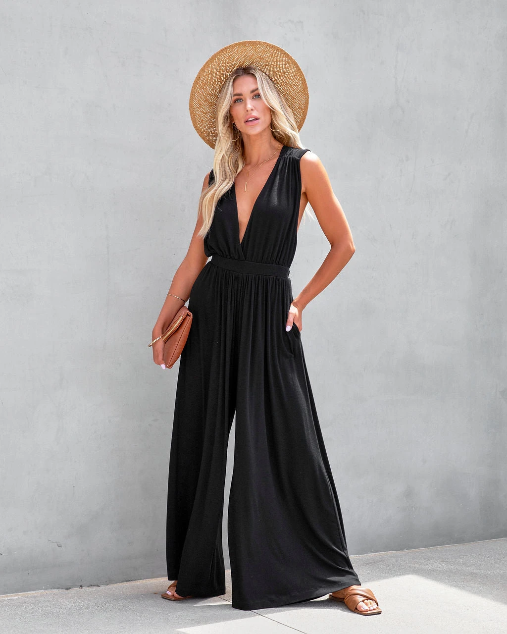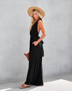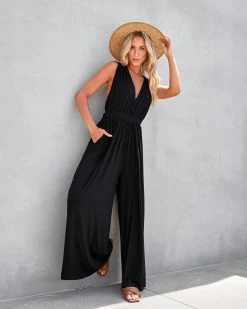 Go for a one and down style in the Walter Pocketed Jumpsuit in black that features a wide pant leg.