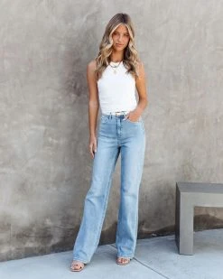 Trendy babes will love the Cassandra High Rise Vintage 90’s Jeans in light wash that feature a relaxed fit.