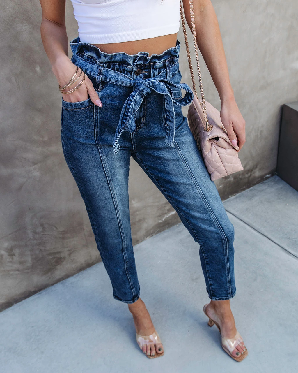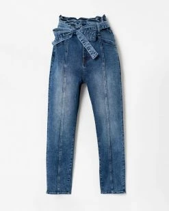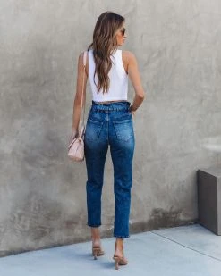 Trendy babes will love the Isabella High Rise Belted Mom Jeans in dark wash that feature a relaxed fit.