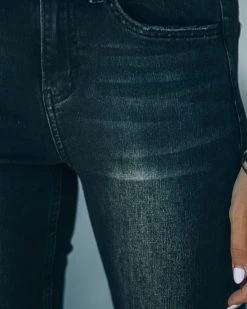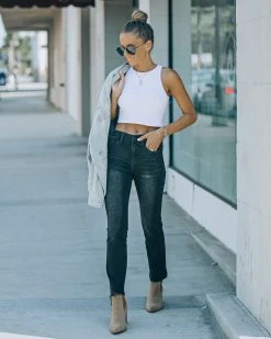 Cool girls will love the Nirvana High Rise Stretch Frayed Hem Jeans that feature a straight leg.