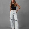 - Size 24: Length measures 41.5” from waist to hem with a 10” rise, 31.5” inseam and 27” waist